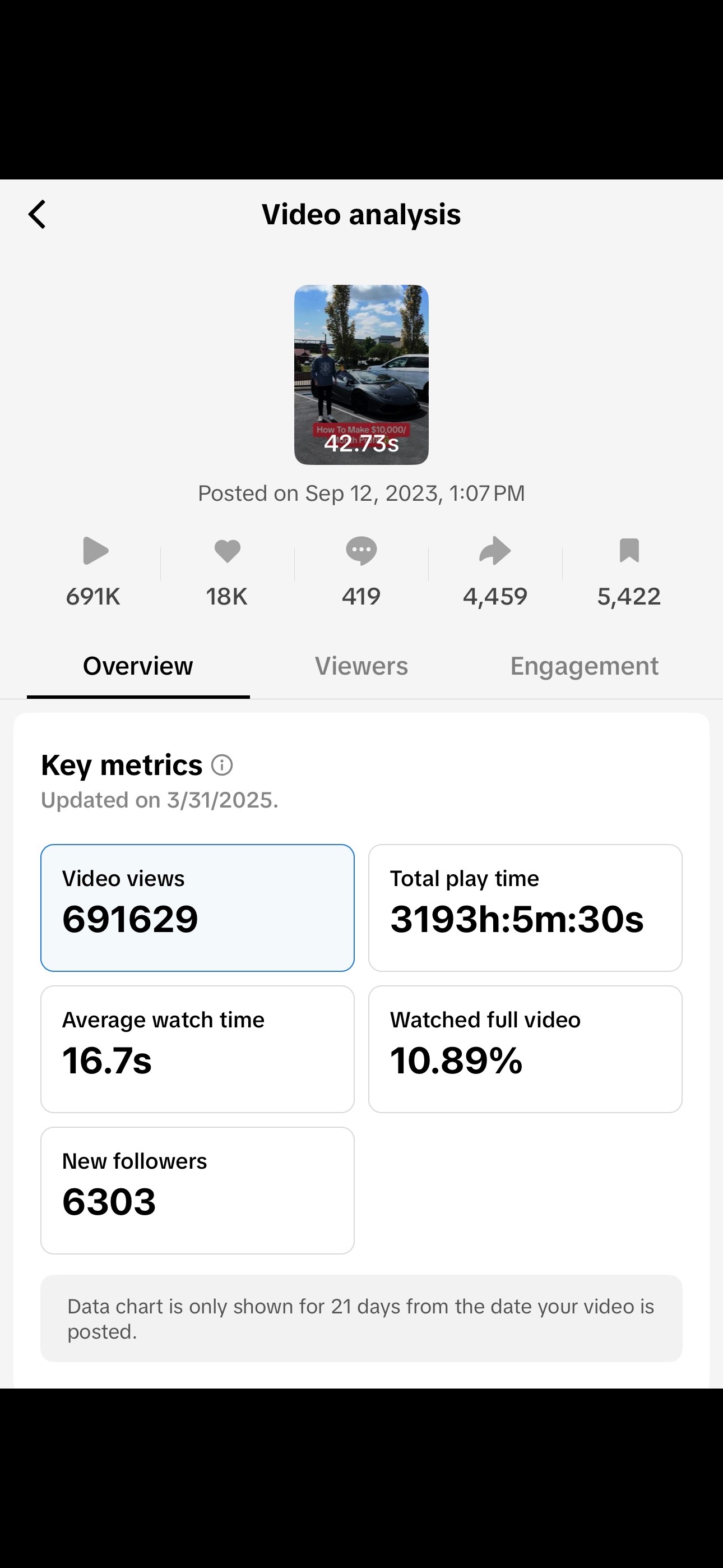 While it’s possible for a video to perform well early on, viral results are never guaranteed and should not be the expectation. Organic social media is not an overnight growth strategy.